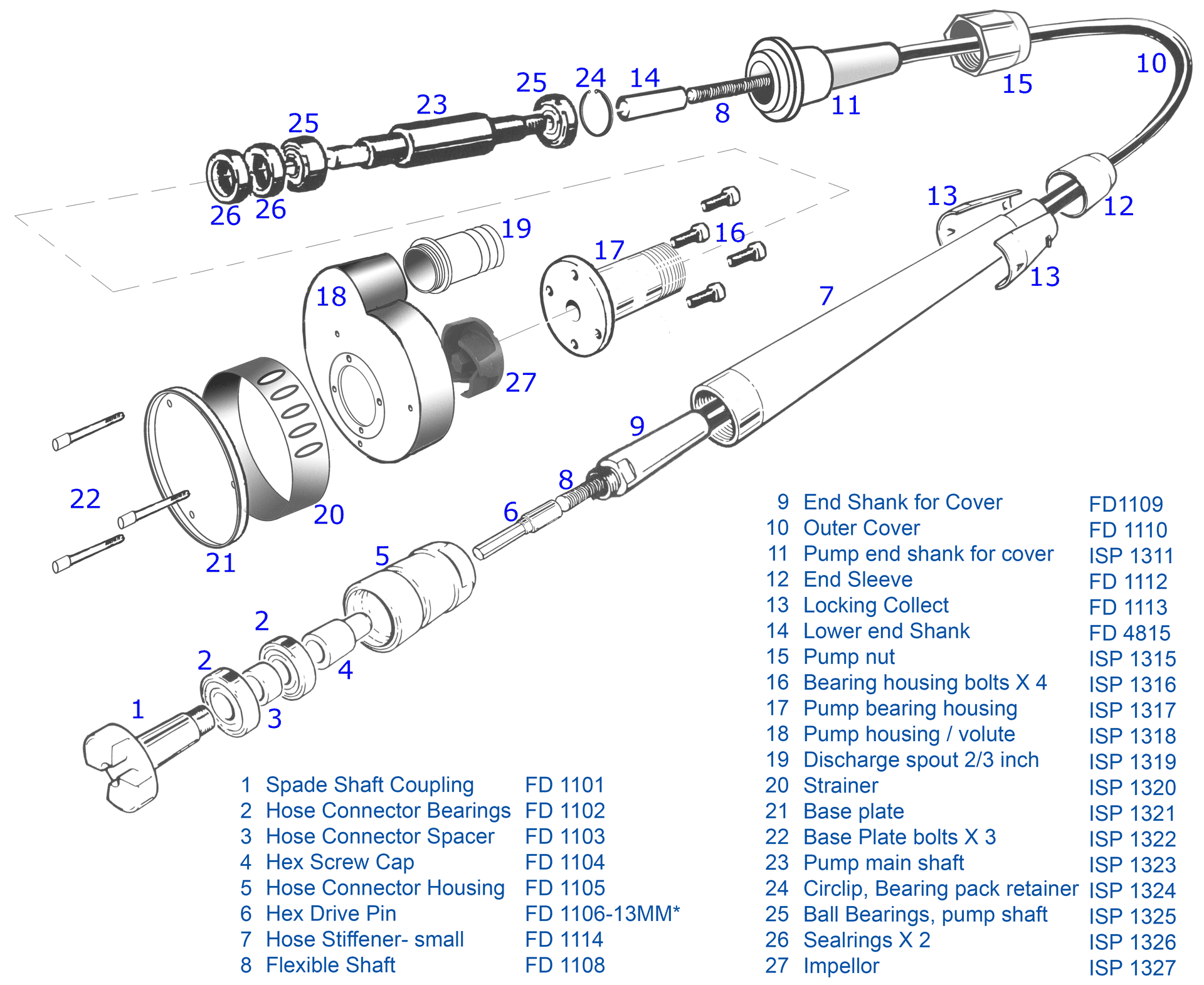 Drive unit, heavy duty sub pumps, sold new, repaired and spares offered.